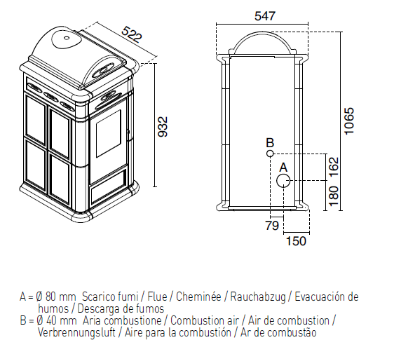 - Verbrannte Leistung: Pmax 9,5 kW – Pmin 2,8 kW