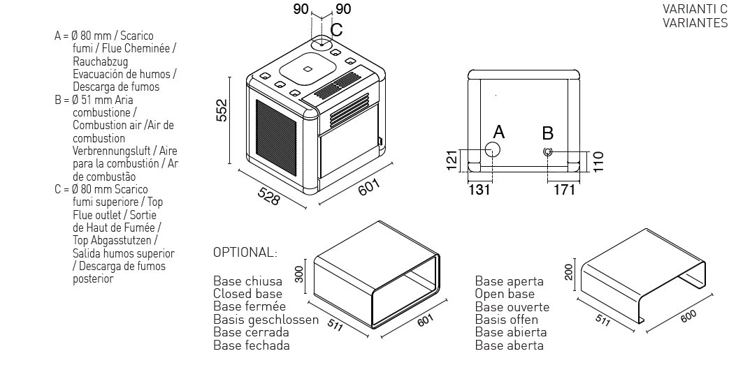 - Mindestabstand zu brennbaren Oberflächen: Seite: 15 cm – Rückseite: 30 cm – Vorderseite: 100 cm