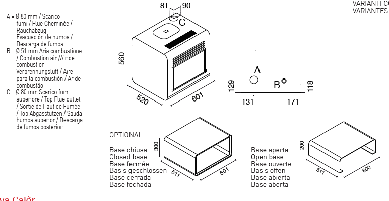 Technische Eigenschaften des belüfteten Pelletofens EVA CALOR Hermes 7,5 kW