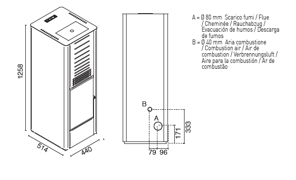 • Pelletsverbrauch: Pmax 2,0 kg/h – Pmin 0,6 kg/h