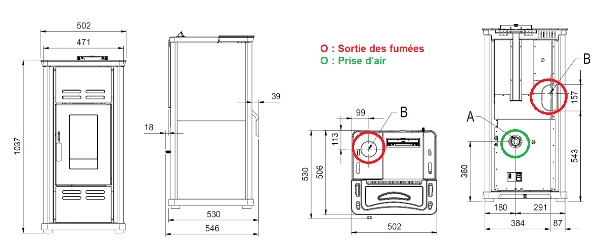 - Rauchabzugsdurchmesser: 80 mm