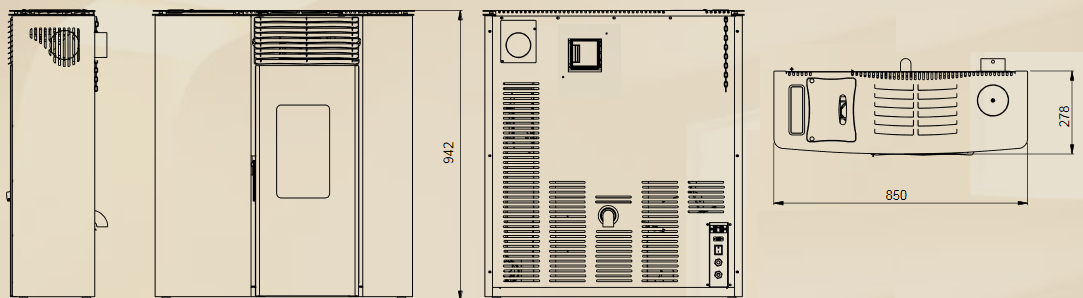 Betriebsart des belüfteten Pelletofensextra flacher Kanalanschluss – LINCAR Flat 501 11 kW