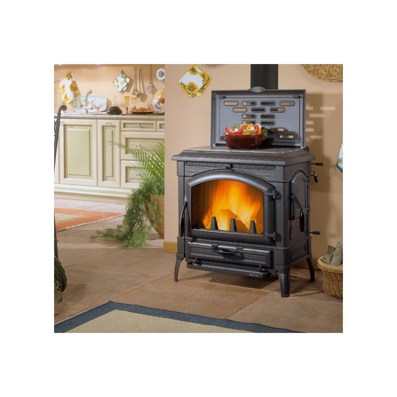Der Holzofen Isotta con cerchi Evo der Marke La Nordica bietet Ihnen die Möglichkeit, Ihr Zuhause bis zu 338 m3 zu heizen. Die Verkleidung des Holzofens Isotta con cherchi Evo besteht vollständig aus Gusseisen, was dem Produkt eine hohe Langlebigkeit und Stoßfestigkeit verleiht. Halten Sie alle Ihre Gerichte warm und kochen Sie sie auf der Platte über dem Herd.