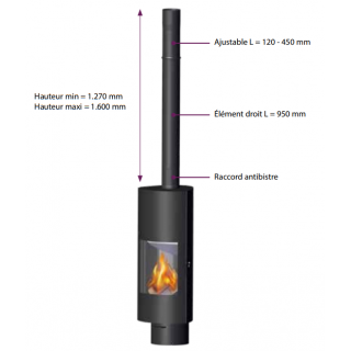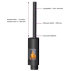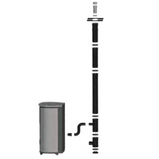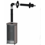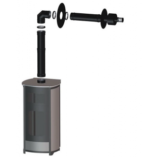 Das horizontale Terminal verfügt über eine Dichtheitsprüfung für die individuelle Ableitung der Verbrennungsgase und die Zufuhr von Verbrennungsluft zum Pelletofen. Der Lufteinlass am Terminal ist geschützt und gewährleistet die einwandfreie Funktion der gesamten Anlage. Das Terminal muss mindestens 40 cm horizontal aus der Außenwand herausragen. Die Sicherheitsflansche sind werkseitig an den Elementen angebracht, um die Installation zu erleichtern, und die mattschwarze Lackierung wird mit hochwertiger Farbe erzielt.
