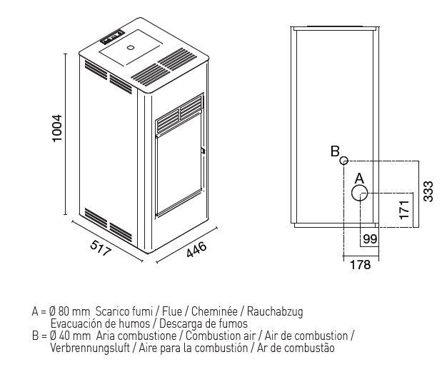 - Pelletsverbrauch: Pmax 2,0 kg/h – Pmin 0,6 kg/h